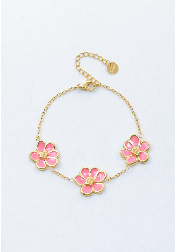 Fint armband med blommor i emalj och eleganta gulddetaljer. En feminin och lättmatchad accessoar som ger ett mjukt lyft till varje outfit. Slitstarkt material gör armbandet perfekt för daglig användning, både till vardag och fest.
