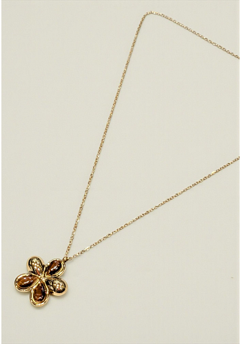 Vackert halsband i guld med ett färgglatt blomformat hänge. En feminin detalj som passar perfekt både till vardag och fest.