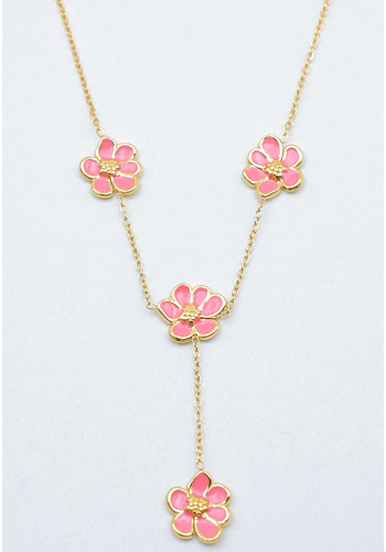 Romantiskt halsband med blommor i emalj och eleganta gulddetaljer. En feminin och stilfull accessoar som passar lika bra till vardag som till fest. Slitstarkt material gör att halsbandet behåller både färg och glans över tid.