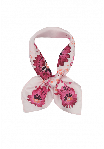 Lekfull scarf med dekorativa blommor i en varm och inbjudande färgpalett. Den silkeslena ytan ger ett lyxigt uttryck och gör halsduken bekväm att bära. En perfekt accessoar som lyfter både vardags- och festlooks.