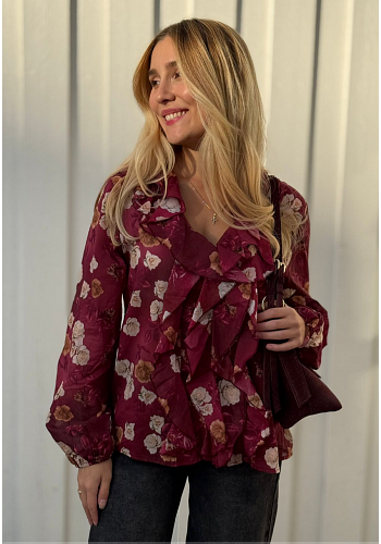 BLOMMIG V-RINGAD BLUS MED VOLANGER