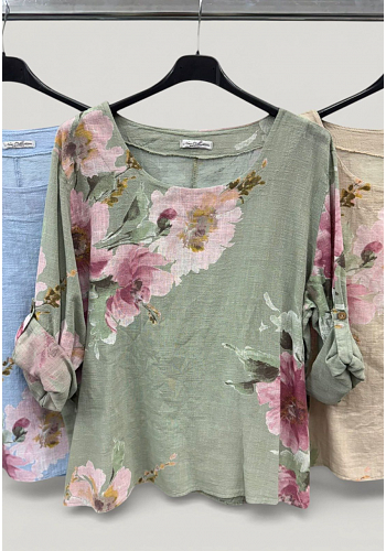 Luftig och sommarfräsch blus i lätt bomullskvalitet med romantiskt blommönster. Designad med 3/4-ärm och rund halsringning – perfekt för svala sommarkvällar eller vardagsstyling.