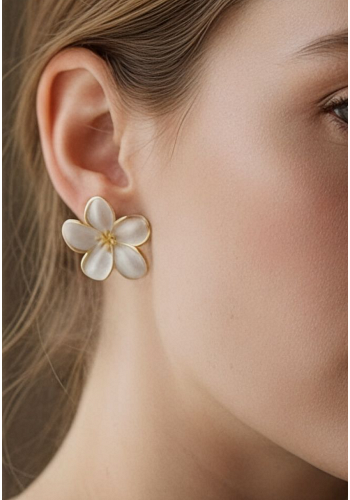 Vackra blomsterörhängen i emaljerad finish med gulddetaljer. Tillverkade i rostfritt stål, hållbara, nickelfria och tåliga mot vatten. Perfekt att bära både till vardags och fest.