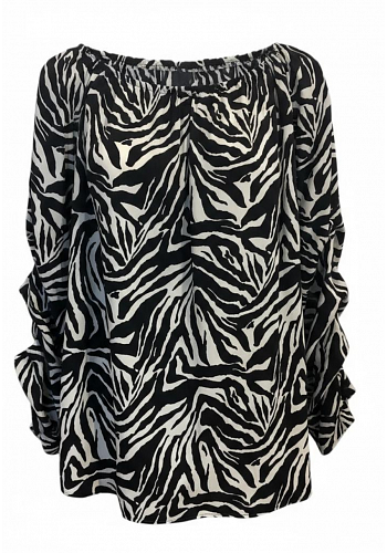 BLUS MED VOLANGÄRM – MÖNSTRAD