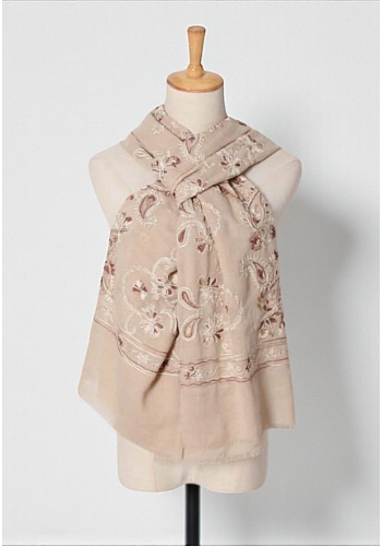 Vacker och mjuk sjal med detaljerat broderimönster i boho-stil. Perfekt att bära över axlarna, runt halsen eller som strandaccessoar. De broderade blommotiven ger en handgjord känsla och en elegant touch till vilken outfit som helst.