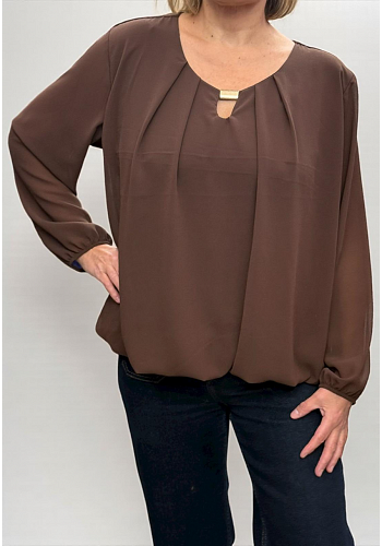 Luftig chiffontopp med fin liten veckdetalj framtill. Rymlig passform i one size (ca XS–XL) – enkel att styla till både vardag och fest.