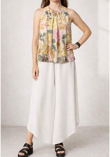 Vår populära haltertopp med knyt i nacken och matchande linne undertill. Stretchigt och skrynkelfritt material som sitter snyggt och passar många.