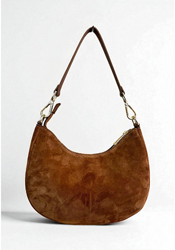 Elegant axelremsväska i äkta skinn och mocka med justerbar axelrem och guldfärgade detaljer. Den mjuka formen gör den både praktisk och stilfull – perfekt till vardags som till fest.