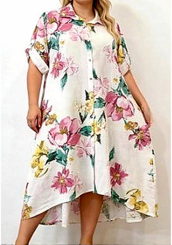 Elegant skjortklänning med vackert blommönster i exklusiv linnemix. Luftig passform med krage och knäppning – perfekt för både vardag och sommar.