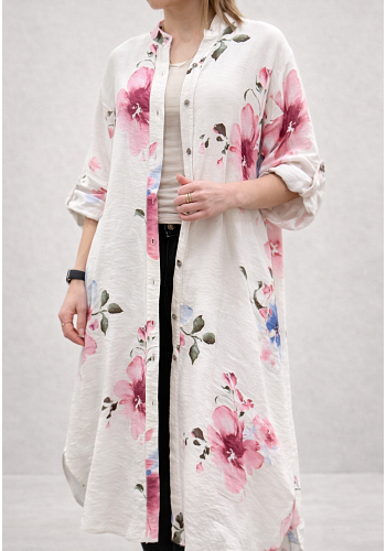 Luftig och feminin skjortklänning i mjuk viskos med romantiskt blommönster. Avslappnad passform med knäppning framtill – perfekt för både vardag och semester.