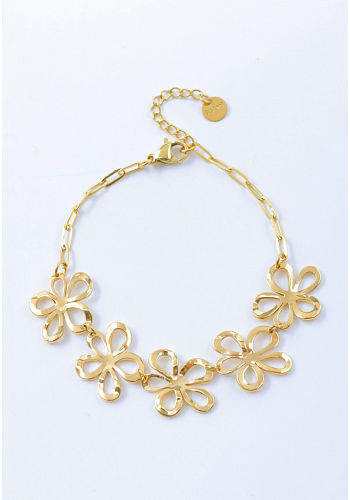 Elegant armband med blommor i metall – stilrent och tidlöst smycke som passar både till vardags och fest. Tillverkat i rostfritt stål för lång hållbarhet och vacker glans.