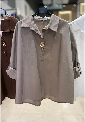 Stilren blus med unika rosknappar framtill och på ärmsluten. En tidlös modell som fungerar både till vardags och fest, enkel att styla med både byxa och kjol.