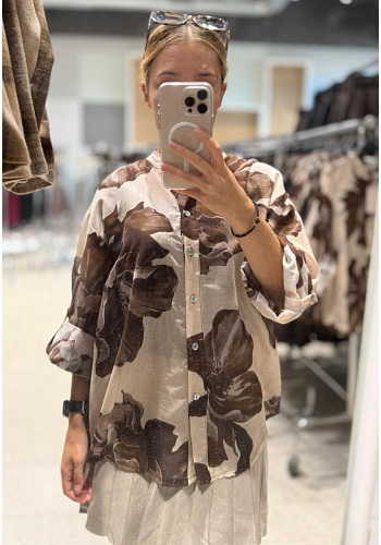 Tunn och luftig skjortblus med blomprint i dova hösttoner, både bekväm och snygg!