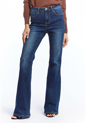 Figurnära bootcut jeans med lätt stretch och klassisk femficksdesign – den perfekta kombinationen av komfort och stil!