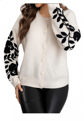 Stickad cardigan med knäppning fram och vackert broderade ärmar med blommotiv. En iögonfallande men lättburen modell som lyfter varje outfit.