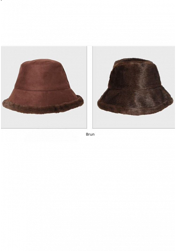Trendig och varm bucket-hatt med utsida i mockaeffekt och insida i mjuk fuskpäls. Vändbar design som ger två stilar i en – perfekt för både stadspromenader och vinterresor. Tillverkad i återvunnet material för en hållbar och modern vinteraccessoar.