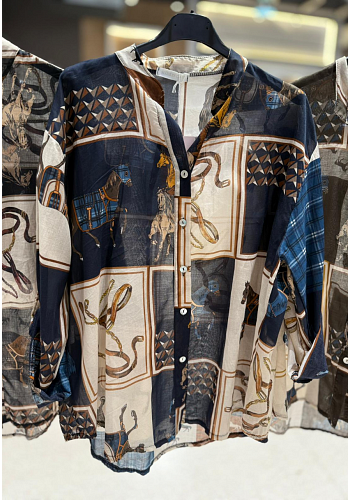 Stilfull blus med charmigt mönster och knäppning framtill. Den lätta bomullskvaliteten gör den bekväm att bära hela dagen, samtidigt som designen ger en elegant touch. Perfekt för både vardag och kontor.