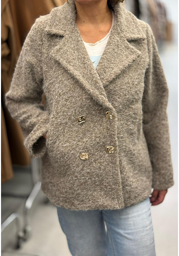 Elegant jacka i mysigt material med detaljrika guldknappar framtill. Perfekt som en dressad övergångsjacka för både vardag och fest!