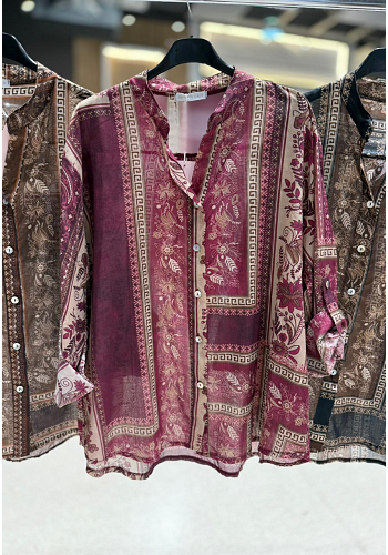 Elegant blus med vackert mönster och tidlös design. Den mjuka bomullskvaliteten gör den bekväm att bära hela dagen, samtidigt som den passar både till vardags och mer dressade tillfällen.