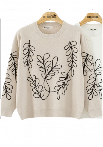Elegant tröja med broderat kvistmönster – stilren men samtidigt uttrycksfull.