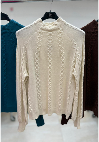 Kabelstickad tröja med hög hals och subtil ballongärm. Ger en klassisk men trendig look som passar perfekt till både vardags och kontor. Bär den instoppad i jeans eller löst över en kjol för en stilsäker höstoutfit.
