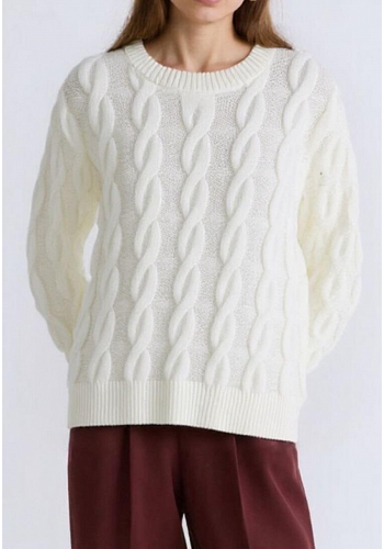 Klassisk flätstickad tröja med lätt glittrig lurex-effekt. En tidlös favorit som funkar både till vardag och fest. Mjuk, varm och enkel att styla!