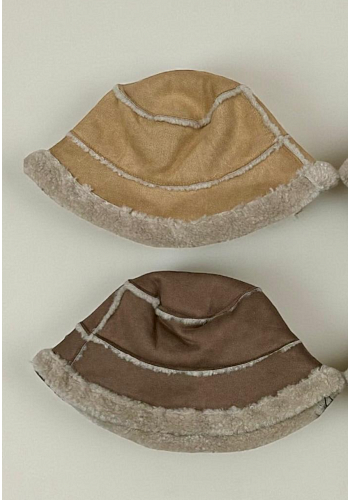 Varm och gosig bucket hat med fårskinnslook och mjuk fuskpäls inuti – perfekt för kyliga dagar med stil.