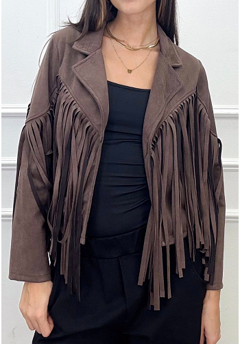 Stilren jacka med trendiga fransar och kortare skärning – perfekt för att ge en bohemisk touch till vardags- och festlooken.