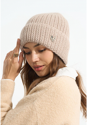 En ribbstickad och värmande mössa med subtila glitterinslag och ett litet hjärta i strass framtill – lika söt som stilsäker till både vardag och vinterpromenader.
