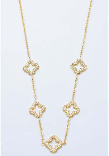 Elegant halsband med dekorativa fyrklöverdetaljer. En stilfull accessoar som passar perfekt till både vardag och fest.