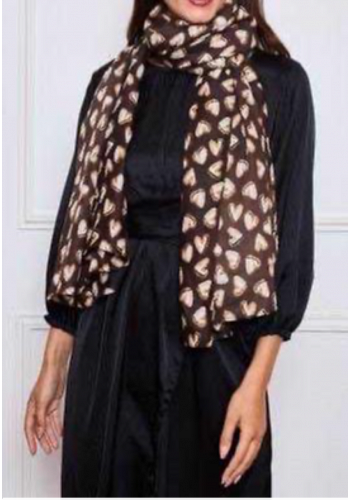 Den här luftiga och följsamma scarfen är ett perfekt tillskott till höst- och vintergarderoben. Med ett charmigt tryck av handmålade hjärtan i tvåfärgskontrast ger den en lekfull men elegant känsla. Kombinationen av bomull och viskos ger ett behagligt fall och en mjuk yta som passar för både vardag och lite festligare tillfällen.