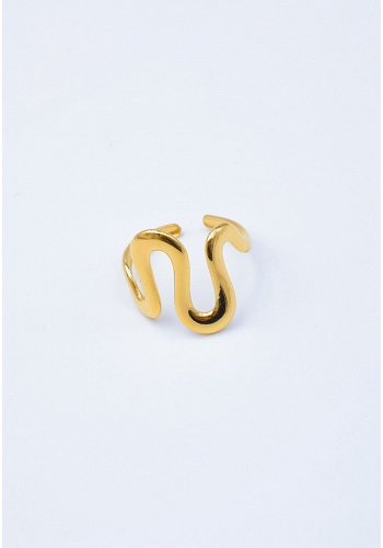 Modern ring med vågformad design i justerbar storlek. Enkel att bära och perfekt för både vardag och fest.