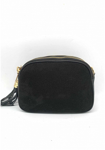 Tidlös och praktisk axelremsväska i äkta mocka med guldfärgade dragkedjedetaljer och avtagbar tofs. Perfekt storlek för dina viktigaste saker, snygg och smidig för både vardag och kväll!