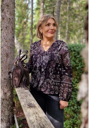 Tunn och skön blus med v-ringning, paisley-print och romantiskt krås framtill, en favorit till både vardag och fest!
