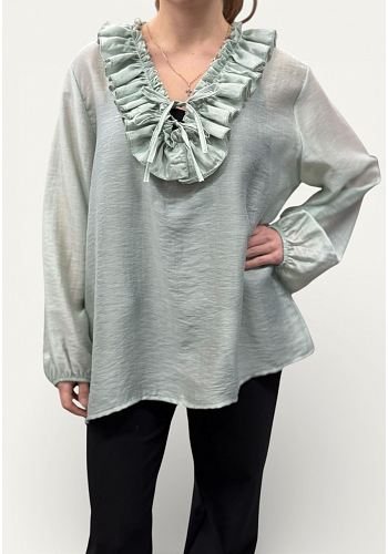 Otroligt fin blus med vacker volangdetalj och knyt framtill.