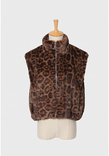 Voluminös och mjuk väst i fluffig fuskpäls med leopardmönster. Stängs med dragkedja framtill och har en lätt boxig passform med resår nedtill för en trendig silhuett. Bär den över stickat eller under kappa för en lager-på-lager-look med edge – ett statementplagg som lyfter varje kollektion.