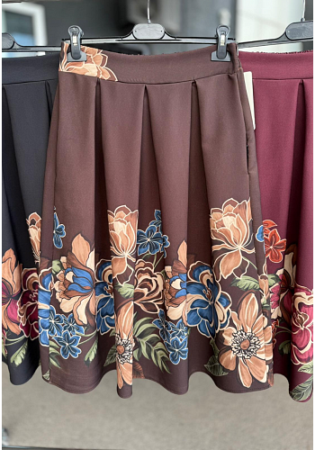 Plisserad midikjol med vackert blommönster och medföljande svart bälte. En stilren modell som passar både till vardag och fest.