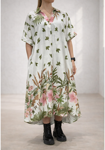 Luftig klänning med stilrent tryck och dekorativ krage. Avslappnad passform i mjuk bomull – perfekt för både vardag och semester.