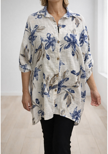 Sval och bekväm oversize-skjorta i bomull med vackert blommigt mönster. Ett perfekt sommarplagg som passar lika fint till jeans och shorts som över en klänning.