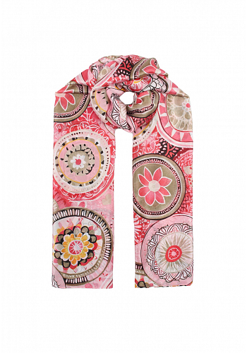 Lyxig och följsam scarf i mjuk sidenblandning med färgstarkt mönster. Ger ett elegant fall och lyfter enkelt både vardags- och festoutfits.