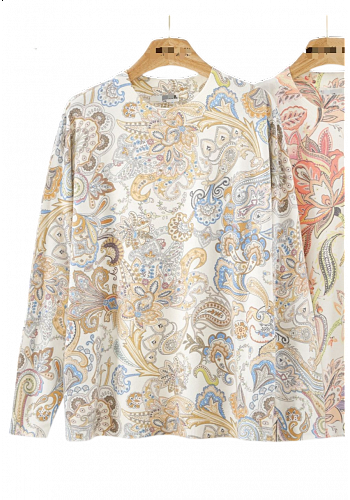 Underbar tröja med livligt mönster i dämpade nyanser – både bekväm och blickfångande.
