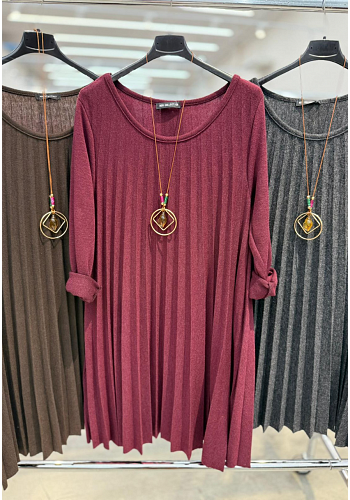 Underbar plisserad klänning med rund hals och trekvartsärm – kommer komplett med matchande halsband! Luftig modell med fint fall som passar både till vardags och fest.