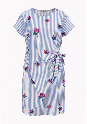 Skärmig och somrig klänning med klassiska ränder och fina broderade blomdetaljer. Den lätta kvaliteten och den smickrande modellen gör den perfekt för varma dagar – lika fin till sandaler som sneakers.
