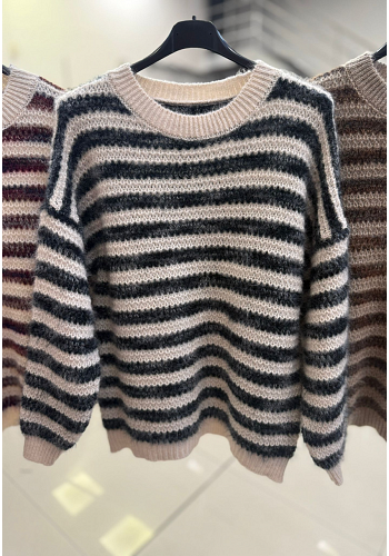 En härligt mjuk och randig stickad tröja som ger både värme och stil till höst- och vintergarderoben. Den fluffiga texturen gör den extra mysig samtidigt som randmönstret ger ett trendigt uttryck. Perfekt till både jeans och kjol för en avslappnad men chic look.