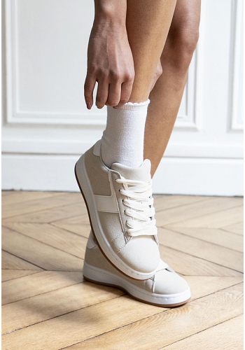 Sportiga sneakers i retrodesign med kontrastdetaljer och breda snören – perfekta för både streetstyle och vardagsbruk.
