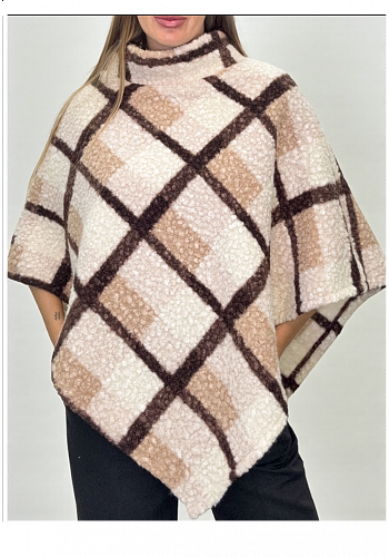 Mysig ponchotopp i teddylook med rutmönster, hög krage och avslappnad passform. Perfekt lager-på-lager-plagg för kalla dagar, både snygg och varm.