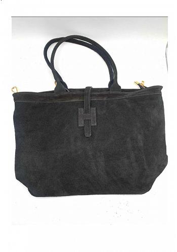 Elegant och rymlig tote-väska i äkta mocka – perfekt för dig som vill ha plats med allt utan att tumma på stilen. Stilren design med dekorativ H-detalj framtill och dubbla handtag. Ett givet val för både jobb och vardag!