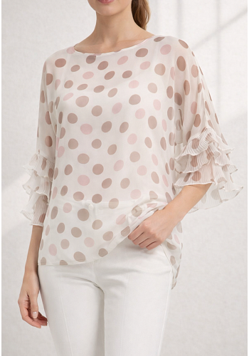 Elegant blus i lätt chiffong med vackra volangärmar. Levereras med mjukt underlinne i viskos som ger en bekväm och smickrande passform.