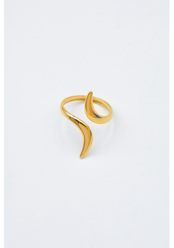 En minimalistisk men iögonfallande ring med organisk form som slingrar sig elegant runt fingret. Både den gyllene och silvriga varianten passar perfekt att mixa med andra smycken – eller bär den ensam som ett statement.
