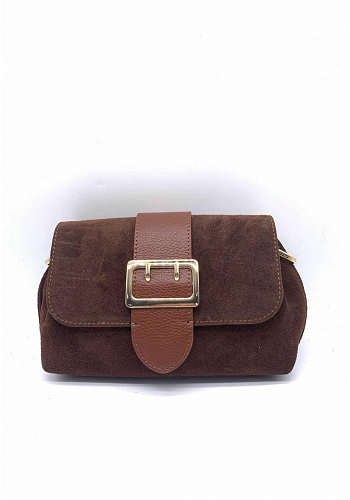 Stilren och kompakt axelremsväska i äkta mocka med dekorativ spänndetalj framtill. Ett perfekt vardagstillskott som funkar lika bra till jeans som till klänning!